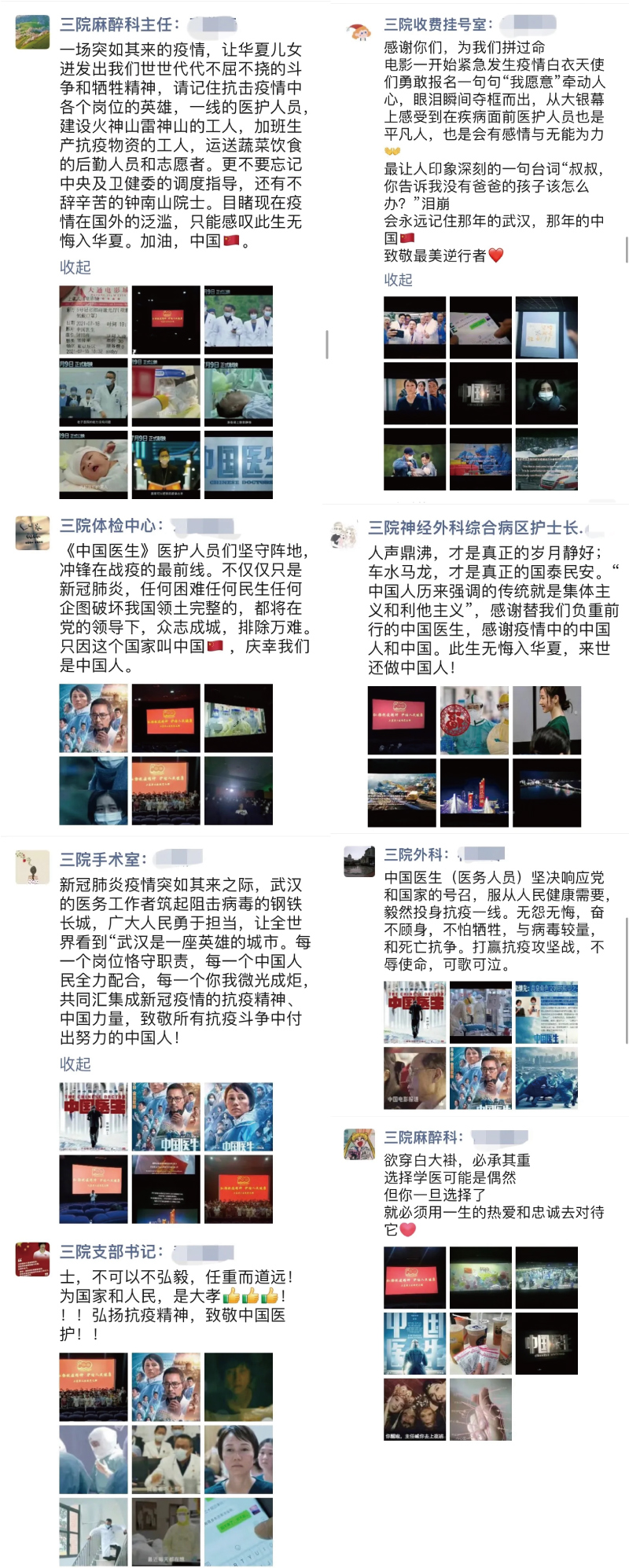 观影过程中,全体人员聚精会神,无不被电影里众志成城、共渡难关的团结无畏精神而深深感染,医护人员与社会各界在疫情防控中携手同心、攻坚克难的一幕幕,深深打动了在场的所有人,有的更是更是泪流满面、百感交集。在党的坚强领导下,中国医护人员用青春和热血书写着无私的大爱,艰苦卓绝的中国抗疫之路也将被载入人类历史。感谢为我们拼过命的中国医生,感谢生在这个伟大的国家!