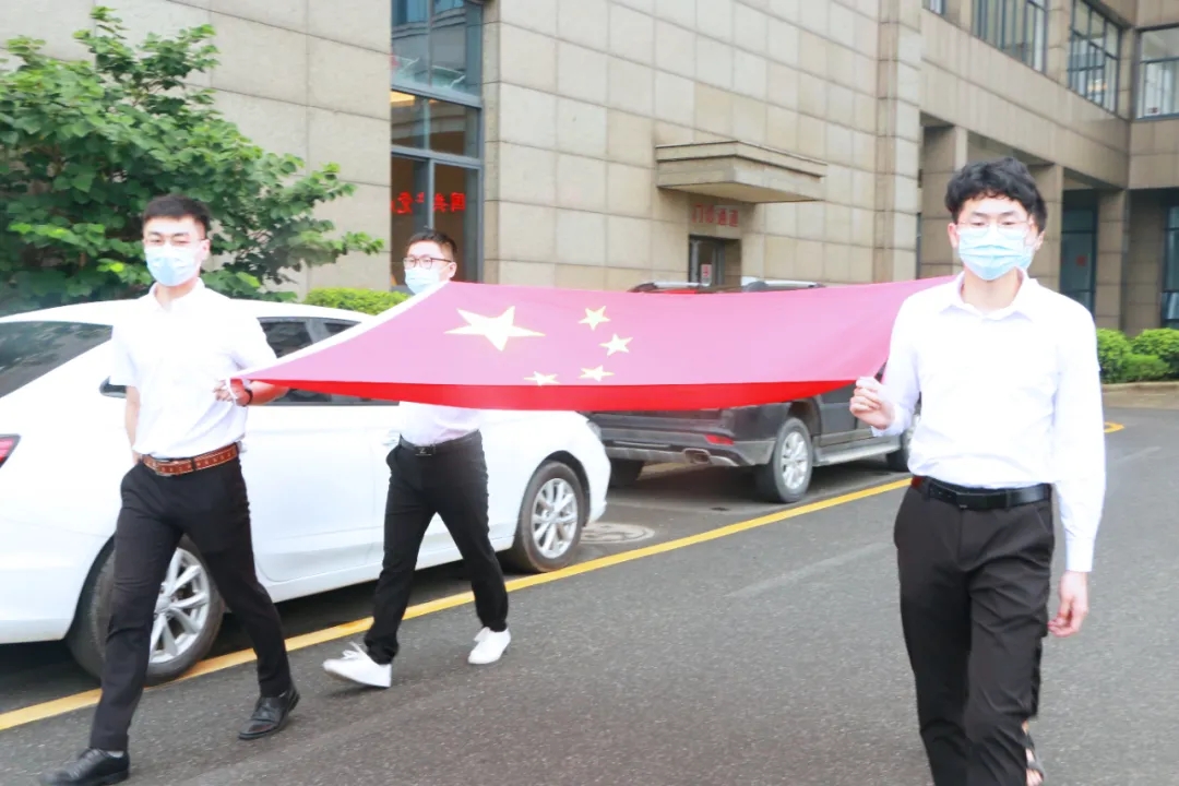 在升旗仪式开始前,全体员工以大合唱《没有共产党就没有新中国》,表达心中满满的感恩祖国之情,为祖国献上虔诚的敬意和祝福。